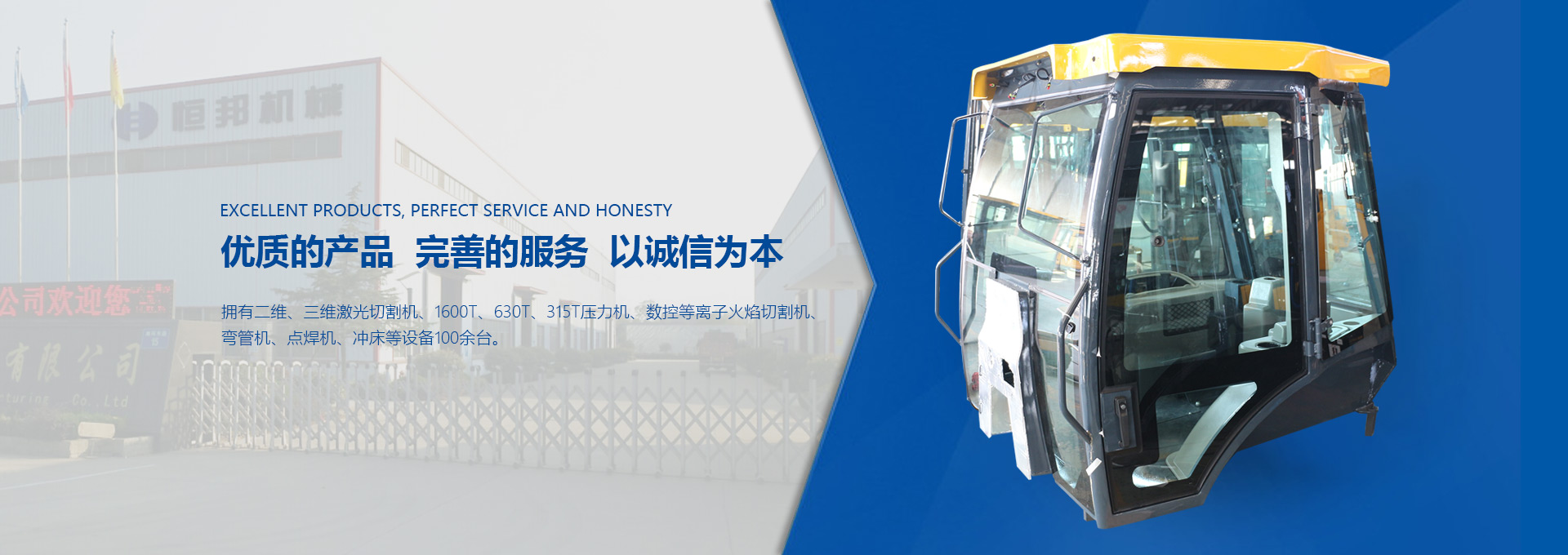 揚(yáng)州市恒邦機(jī)械制造有限公司位于風(fēng)景秀麗的揚(yáng)州市江都區(qū)丁伙工業(yè)園區(qū)。瀕臨長江,緊靠京滬高速、啟揚(yáng)高速,地理條件優(yōu)越,交通營運(yùn)便利。我公司集多年模具開發(fā)和鈑金制造經(jīng)驗,自2009年起,專注生產(chǎn)工程機(jī)械駕駛室、配重塊、覆蓋件和特種駕駛室。研發(fā)設(shè)計技術(shù)人員30名,員工300名。現(xiàn)代化生產(chǎn)車間20000平米。...